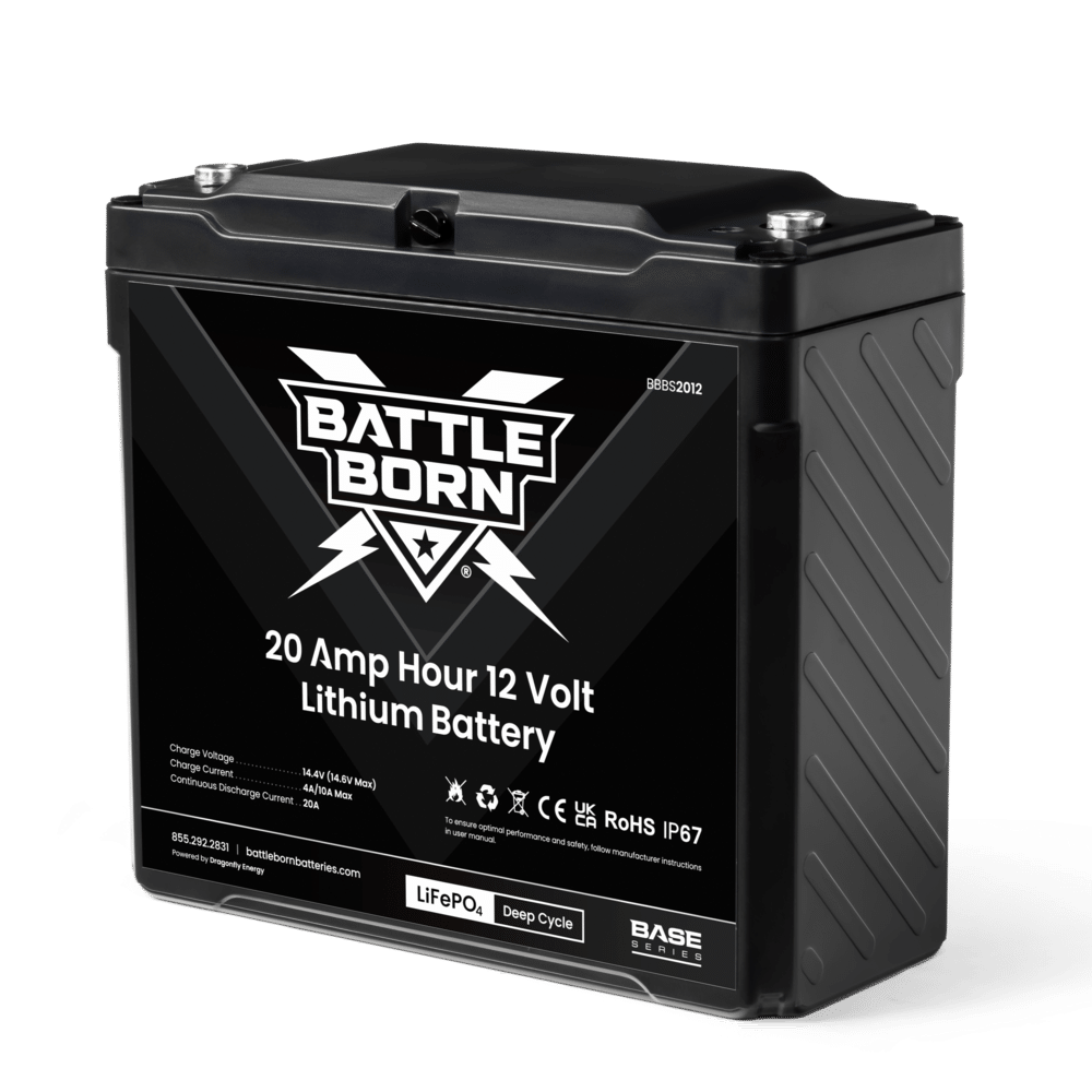 A compact, small-form-factor battery that delivers dependable Battle Born performance. The Battle Born Base Series 20Ah 12V delivers safe, reliable power in a compact form factor — perfect for fish finders, lighting, backup power, and portable systems.