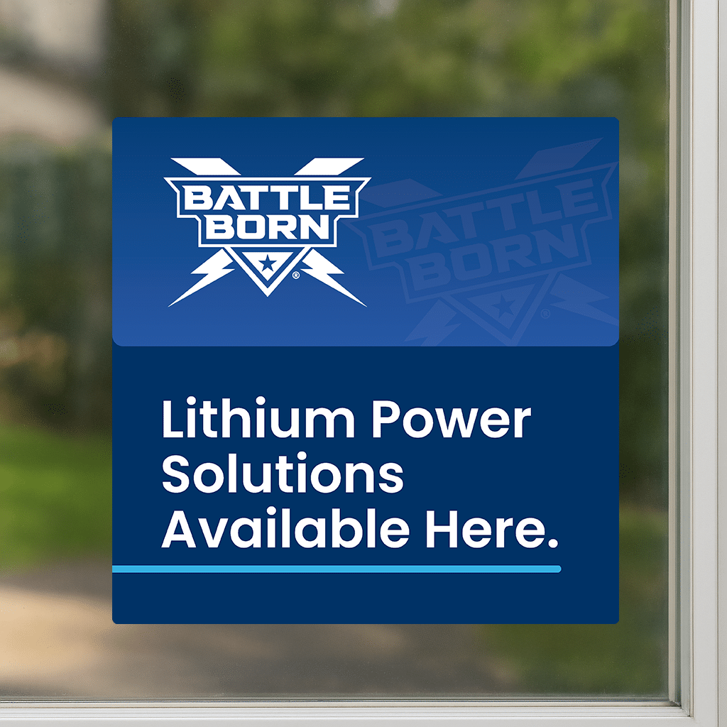 Enhance your storefront with the Battle Born Window Cling, a dealer-exclusive promotional piece designed to showcase America’s most trusted LiFePO₄ battery brand. Perfect for windows, entry doors, or display areas, this eye-catching cling lets customers know that unstoppable power solutions are available inside. Sparking conversations about off-grid upgrades and lithium technology the moment they walk by.