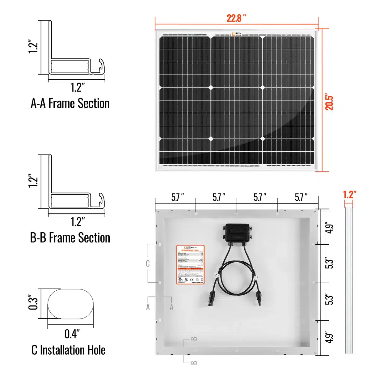 The Rich Solar MEGA 50 | 50 Watt Solar Panel is a compact 12V off-grid solar panel ideal for boats, vans, trailers.
