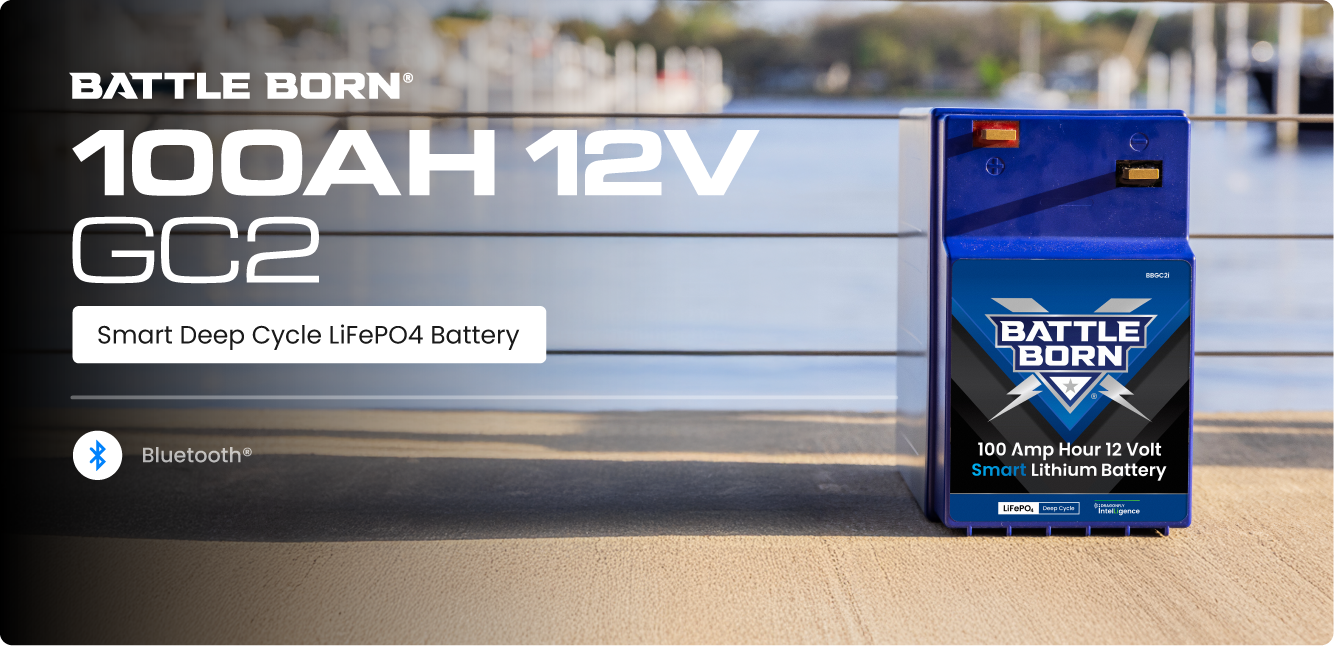 The Battle Born 100Ah 12V GC2 LiFePO4 Battery delivers dependable deep cycle power in a GC2-size footprint commonly used in RV and marine battery banks. Designed as a lithium upgrade, it provides reliable energy storage, long service life, and zero routine maintenance.
