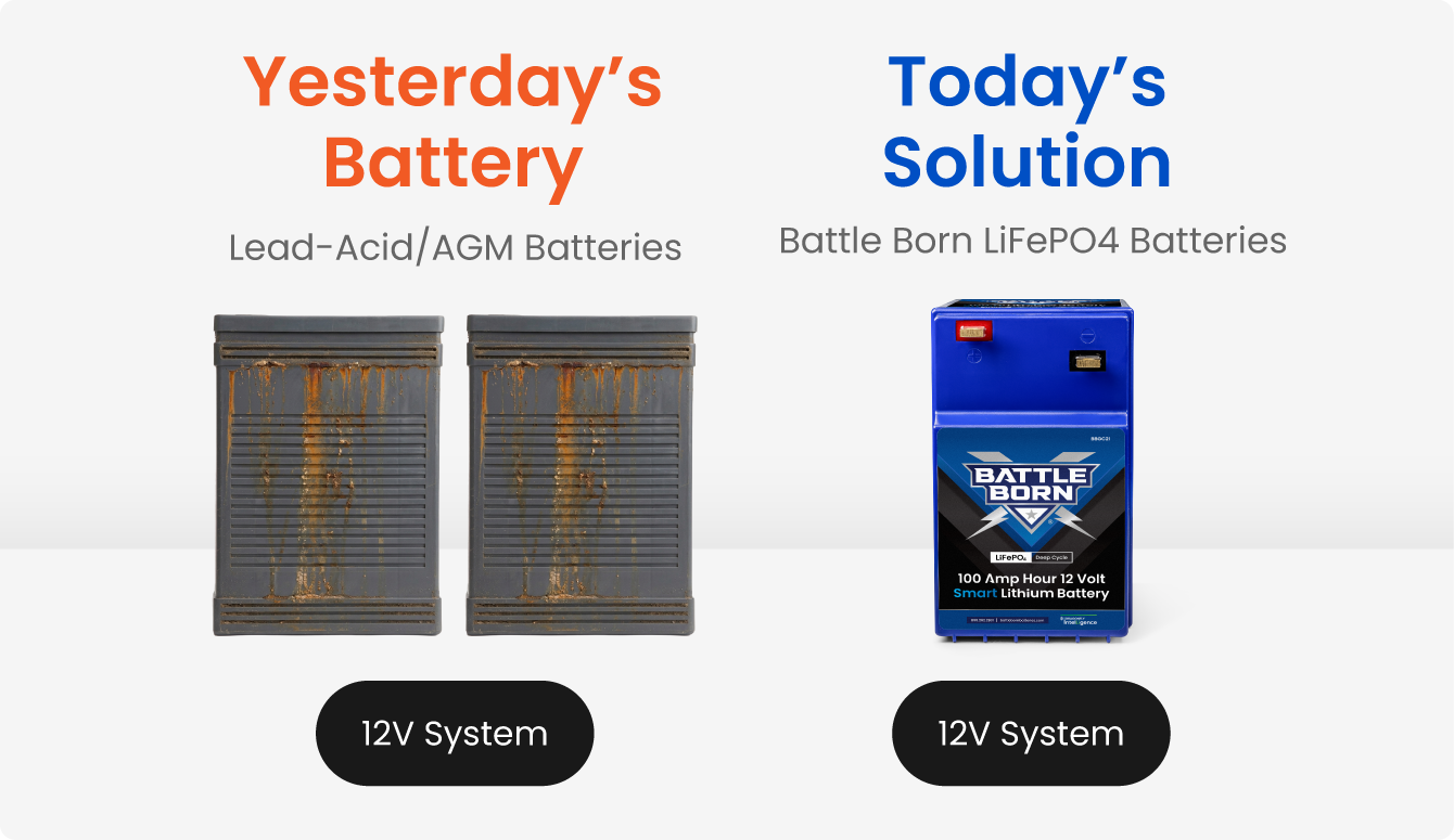 By replacing traditional GC2 lead-acid batteries with lithium, systems gain reliable 12V power with significantly less weight, longer cycle life, and virtually no maintenance.